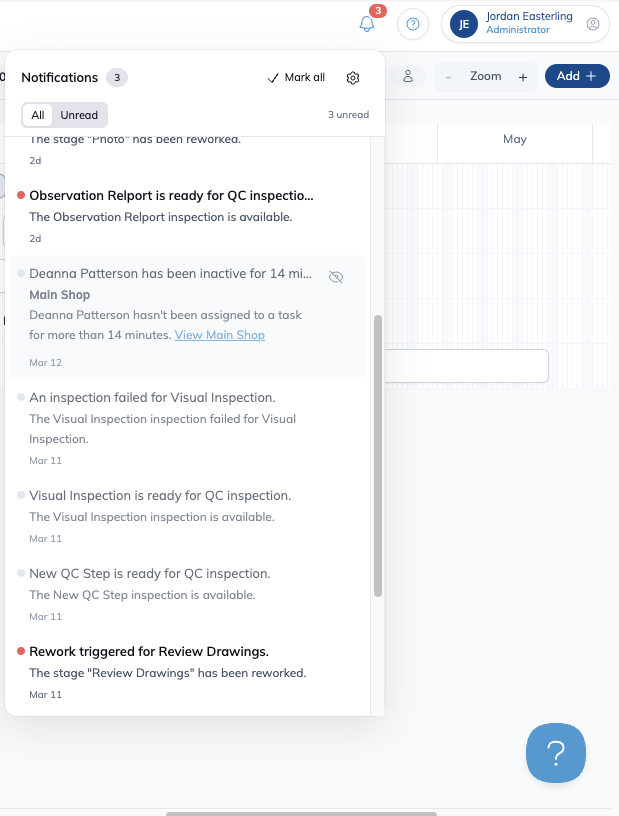 | Quality Control inspection available | Get notified when a QC inspection is ready to be performed. |