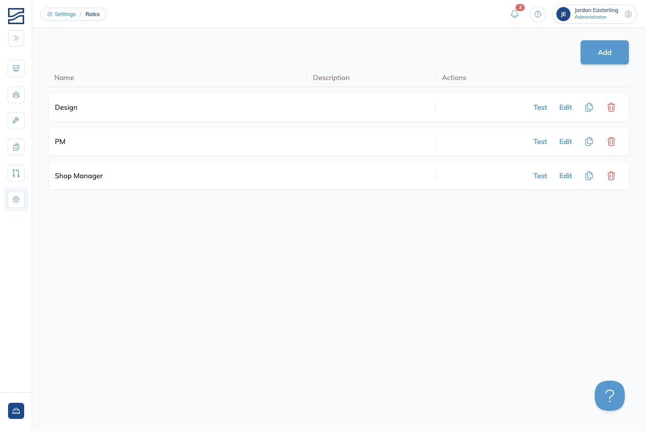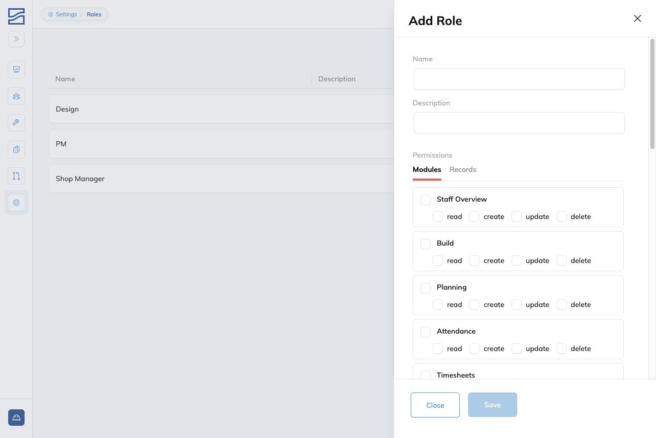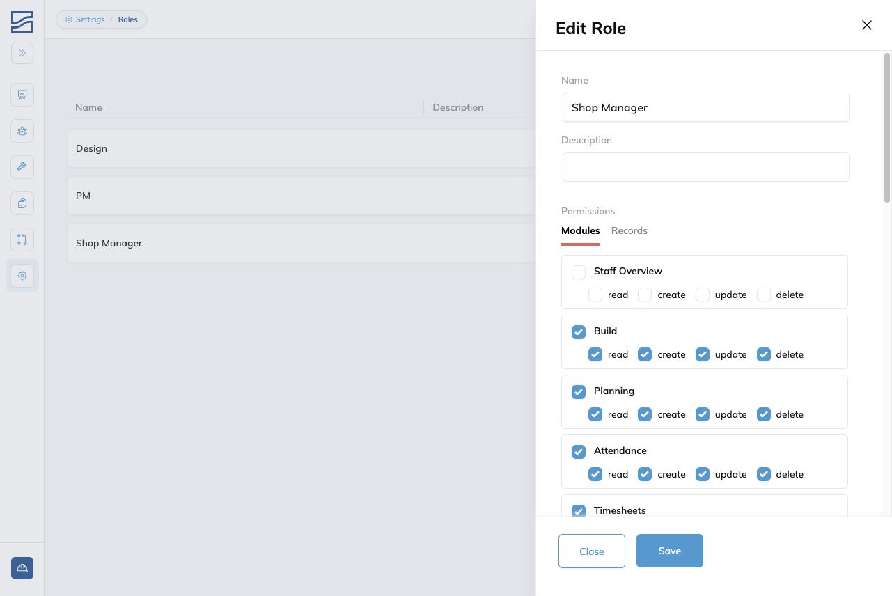| Routes | View and manage Build Routes: the sequences of stages that define how orders flow through the shop. Without Read access, Routes is hidden. |